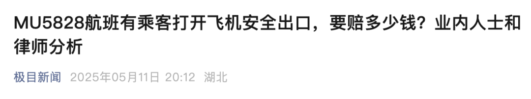 5月11日,长沙至昆明的东航MU5828航班上,有乘客打开了飞机的安全出口,引发关注。